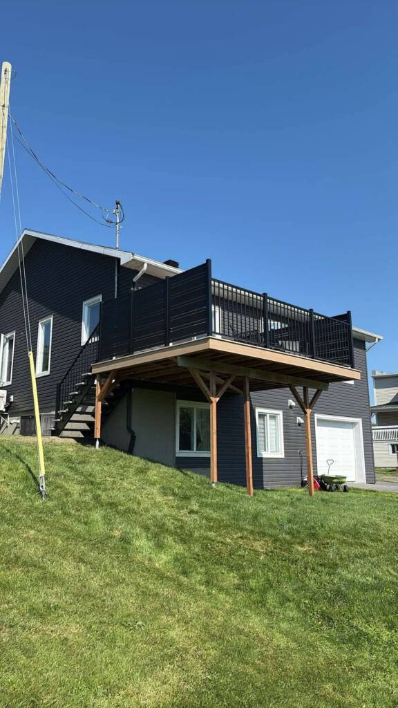 Voici un magnifique patio complètement remis à neuf : solidité, confort et esthétisme au rendez-vous pour profiter pleinement du reste de la belle saison.